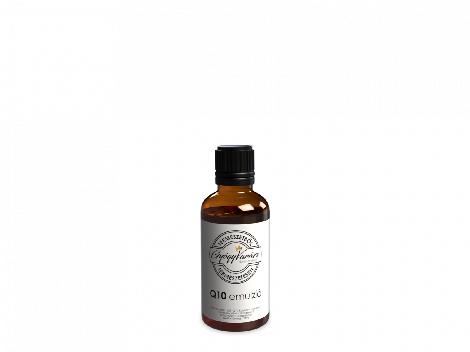 A GyógyVarázs Q10 Emulzió termékpalettánk egyik legnagyobb tudományos újítása. A Q10 olaj bármilyen folyadékba cseppentve teljességgel és azonnal oldódik, a száj nyálkahártyájáról, a nyelőcsőből és a gyomorból pedig azonnal és gyakorlatilag teljes mértékben felszívódik. (Ez a külsőleges Q10 használatról már közel sem mondható el!)
